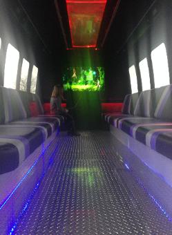| Bus #6 is a 20-22 passenger Party bus/ Limousine bus. This Bus is perfect for you and your friends to party on your way to the party! Save money drinking while on the bus on your way to the clubs. And no worries because we will get you back home safe and sound! We also do milder Proms and Kids birthday parties , drive around Indy, go to Sky zone, maybe to eat at Dave and Busters or some other fun activity. This bus features a 50" LED Smart tv, Playstation 3 and a Booming stereo system with Bluetooth hookup, Disco celling and party lights! If you have a hot spot on your phone you can connect to Netflix or Youtube for videos. Or bring a PS3 game to play or Bluray movie to watch. Click here for all pricing Call early to secure a bus cause they book up fast! |
