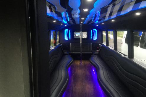 | The latest addition to the fleet. This Limo / Party bus has seating for up to 25 passenger! The Party bus is great for weddings, going to concerts, Proms, Birthday parties, Bar crawls, Wine tours, Sporting events and more. Bring your own alcohol for the mobile party and get home safe and sound with no worries of a DUI!. This bus features privacy door, 2 built in coolers, 2 tv's for use with DVD player, Bumping stereo system with Ipod hookup, dancing pole, Disco celling and party lights! Click here for all pricing Call early to secure a bus cause they book up fast! |