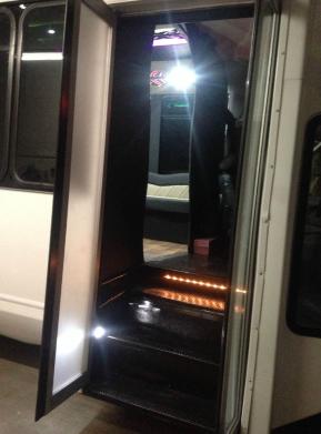 | This 15-16 passenger Party bus/ Limousine bus is perfect for you and your friends to go paint the town together Great for Proms, Weddings, Bar crawls, casino runs, winery tours, Kids B-day parties, Football tailgating and more. This bus features A karaoke machine that has over 3000 songs, 2 tv's, dvd player, Disco floor with dancing pole, party lights, Ipod hook..Bluetooth connectivity and is one sweet Party bus! Click here for all pricing Call early to secure a bus cause they book up fast! |
